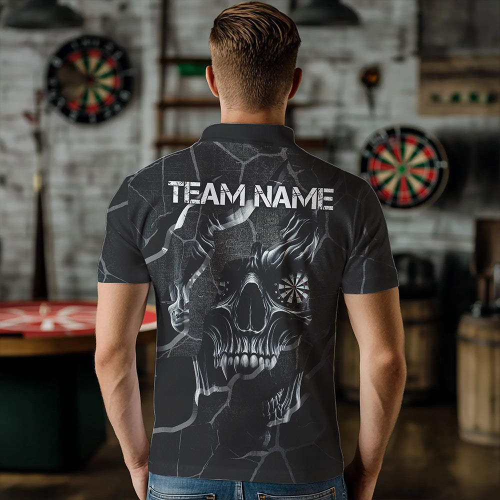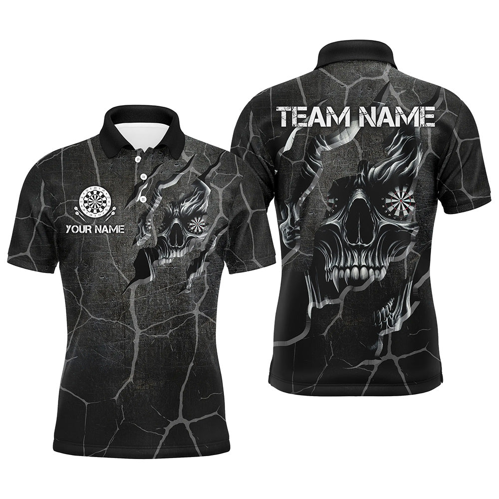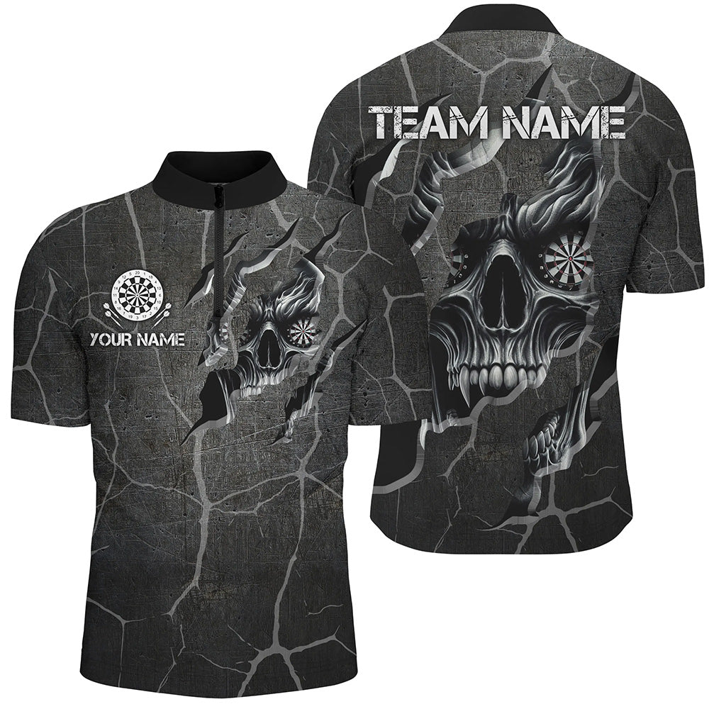 Personalized Skull Black Grunge Darts Polo And Quarter-Zip Shirts For Men Custom Darts Team Jerseys TDM2430