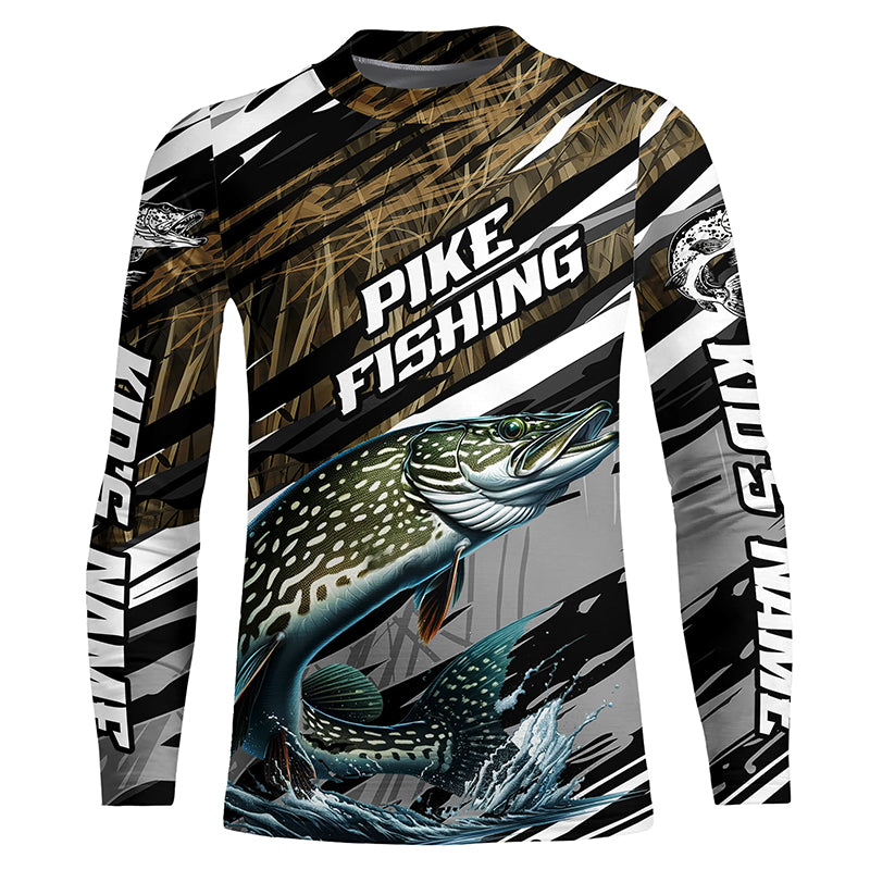 Pike Fishing Grass Camo Custom Long Sleeve Shirts, Pike Uv Protection Tournament Fishing Jerseys IPHW6081