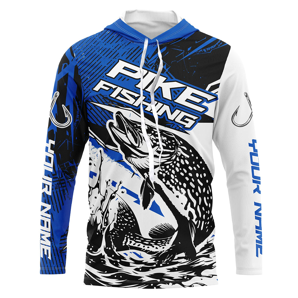 Personalized Pike Fishing Jerseys, Pike Long Sleeve Tournament Fishing Shirts Fishing Gifts | Blue IPHW6207