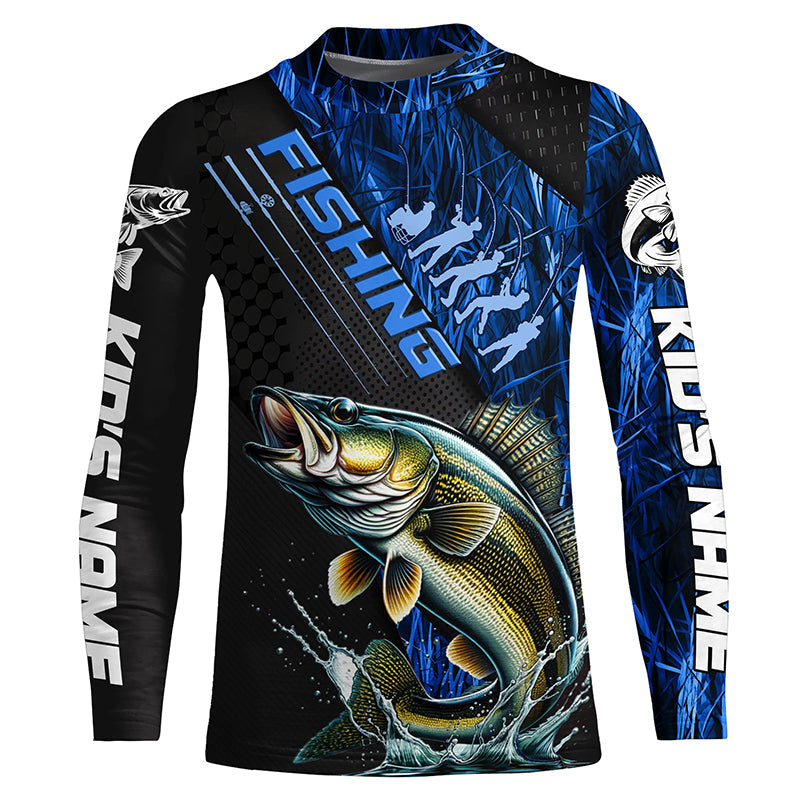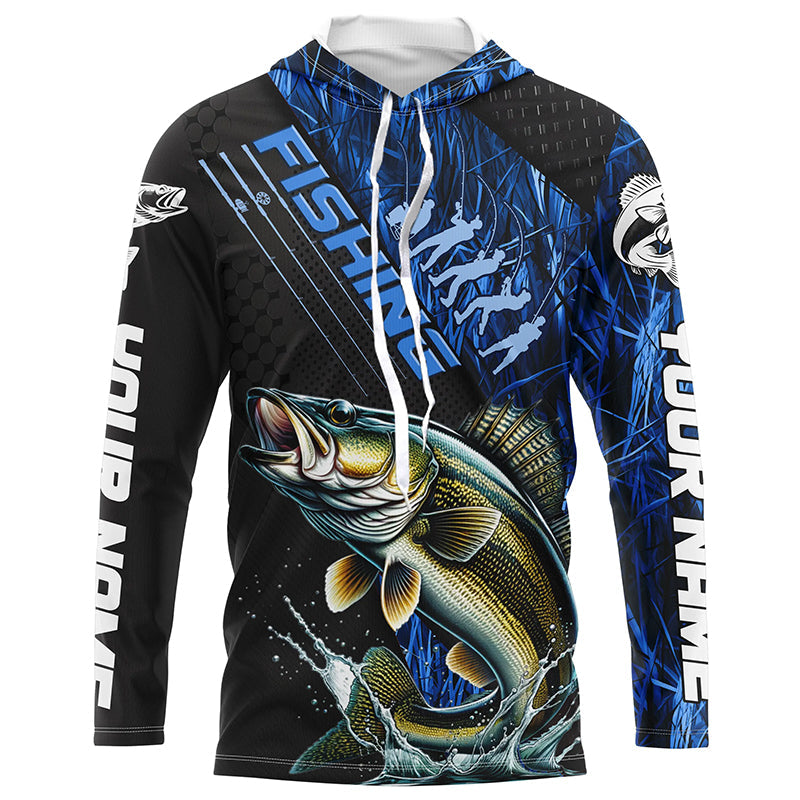Custom Walleye Fishing Long Sleeve Tournament Shirts, Walleye Fisherman Jerseys | Blue Camo IPHW6247