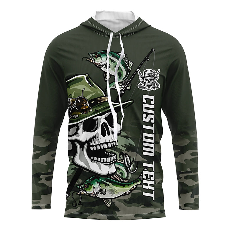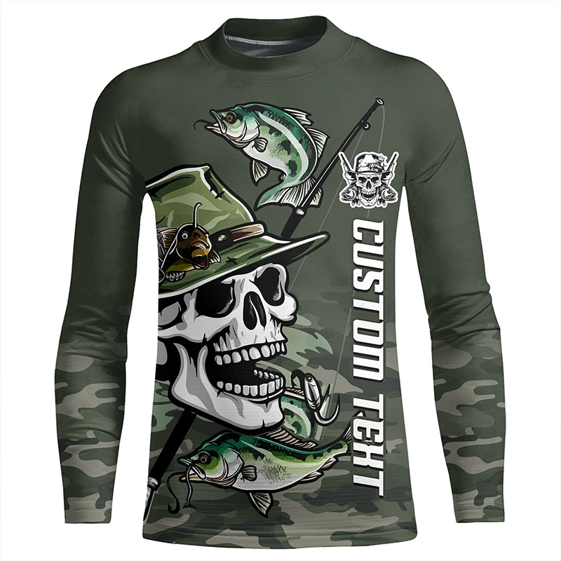 Skull Fisherman Custom Long Sleeve Tournament Fishing Shirts, Skull Performance Fishing Jerseys IPHW6344