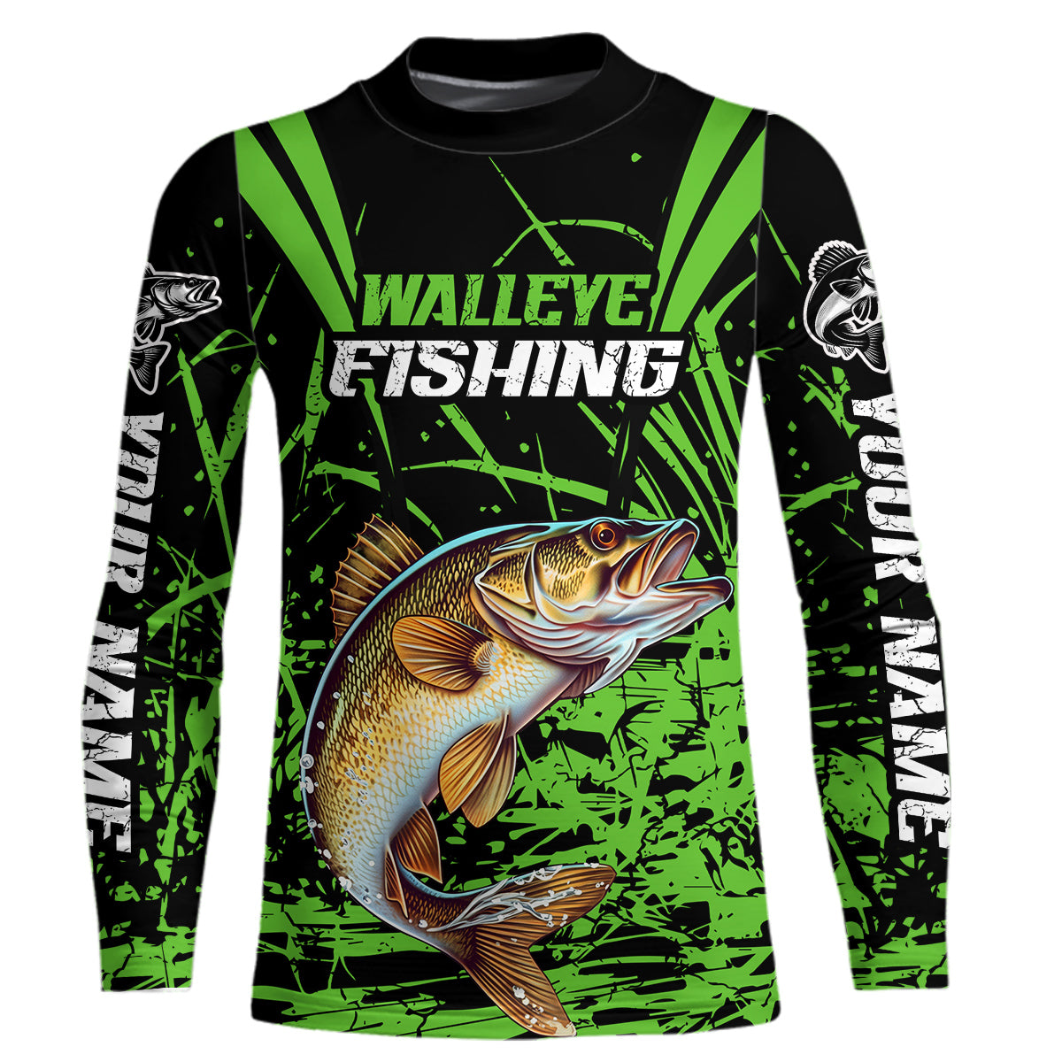 Customized Walleye Fishing Long Sleeve Tournament Shirt, Walleye Fishing Gifts For Fisherman | Green IPHW6647