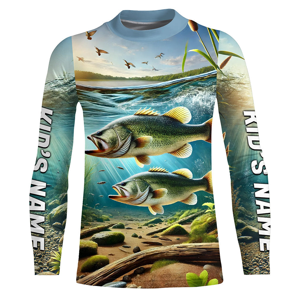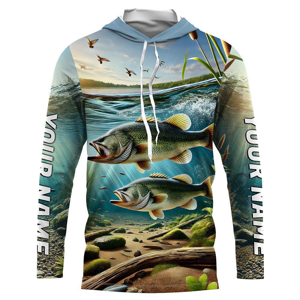 Custom Largemouth Bass Long Sleeve Fishing Shirts, Bass Fishing Tournament Shirt IPHW7074