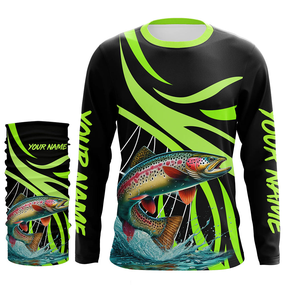 Personalized Rainbow trout Performance Long Sleeve Fishing Shirts, Tournament Fishing Jerseys | Green NQS7449