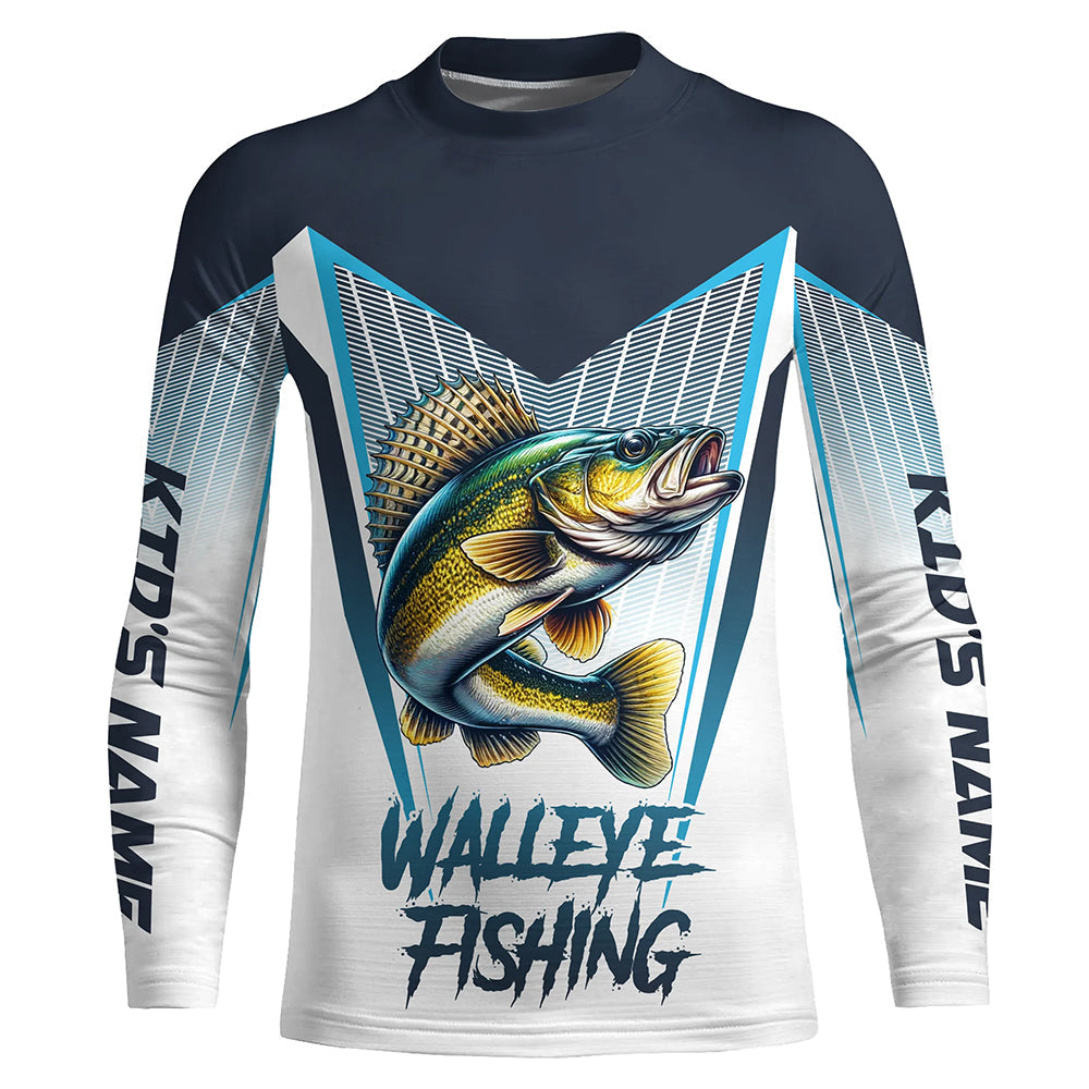 Personalized Walleye fishing Tournament Long Sleeve Fishing Shirts, Walleye Fishing Jersey | Blue NQS9225