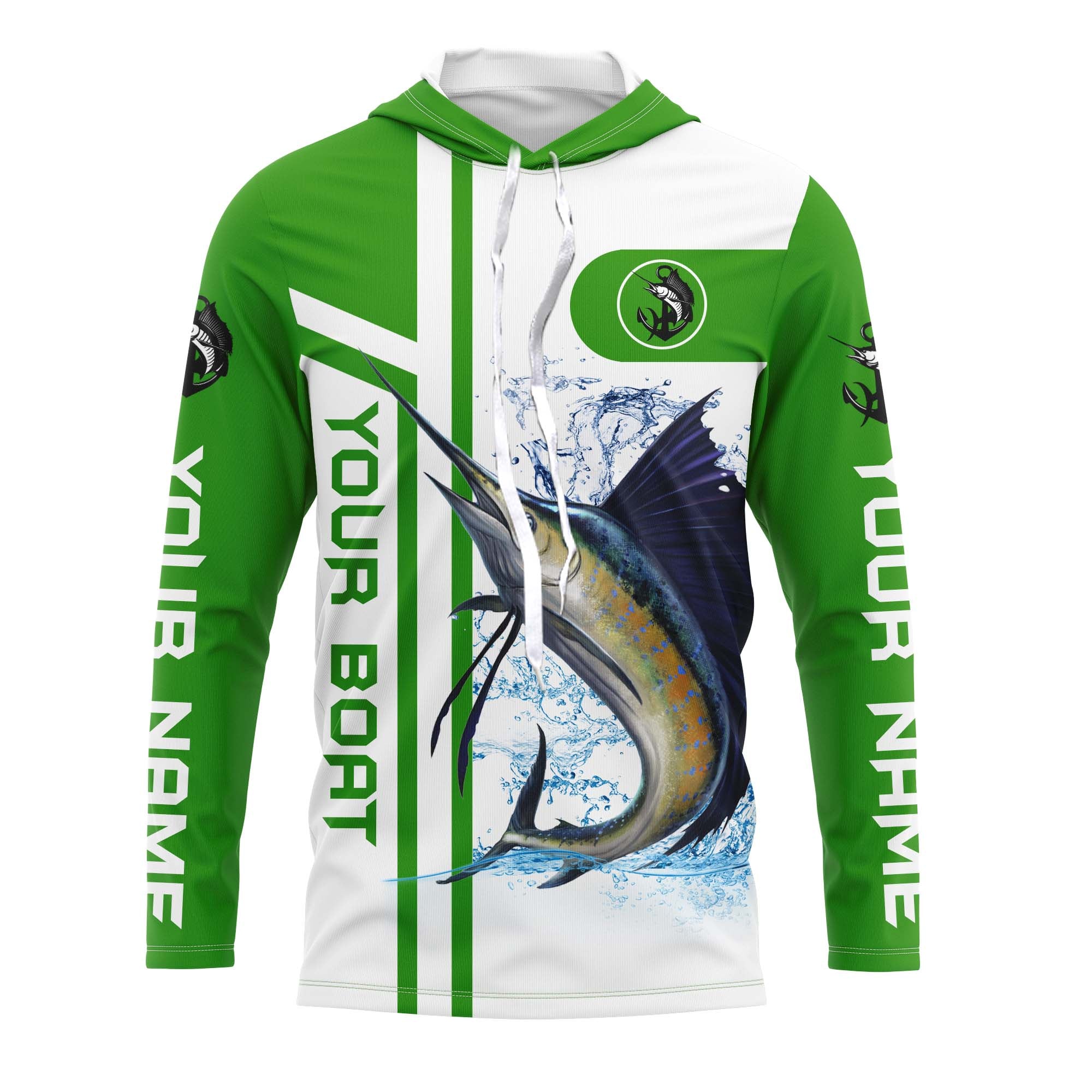 Sailfish fishing Customize name and boat name fishing shirts for men, custom fishing apparel | Green - NQS3252