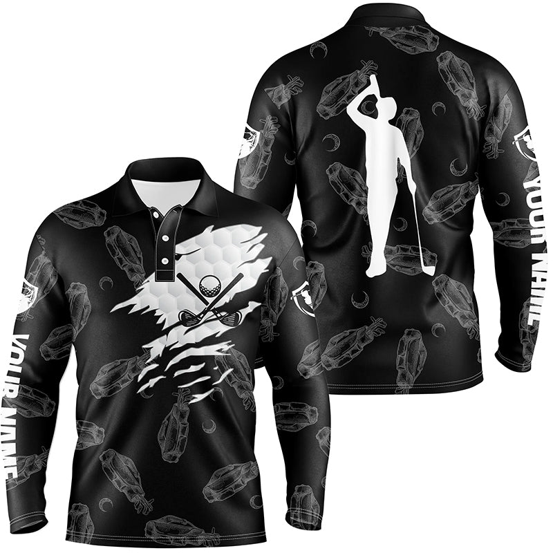 Mens golf polo shirt custom name black golf clubs pattern shirt NQS3816
