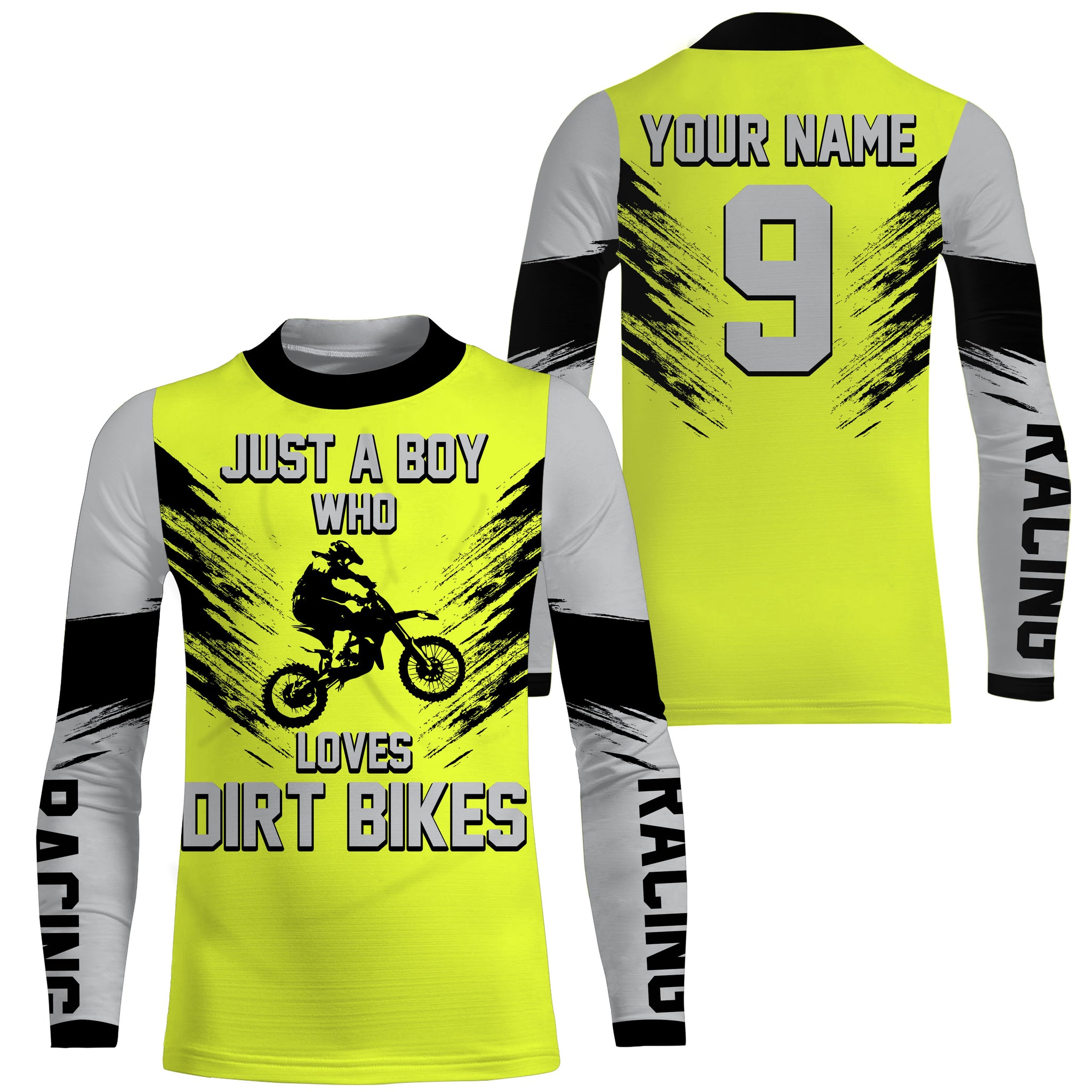 Just A Boy Who Loves Dirt Bikes custom jersey green UPF30+ men boys motocross racewear off-road NMS969