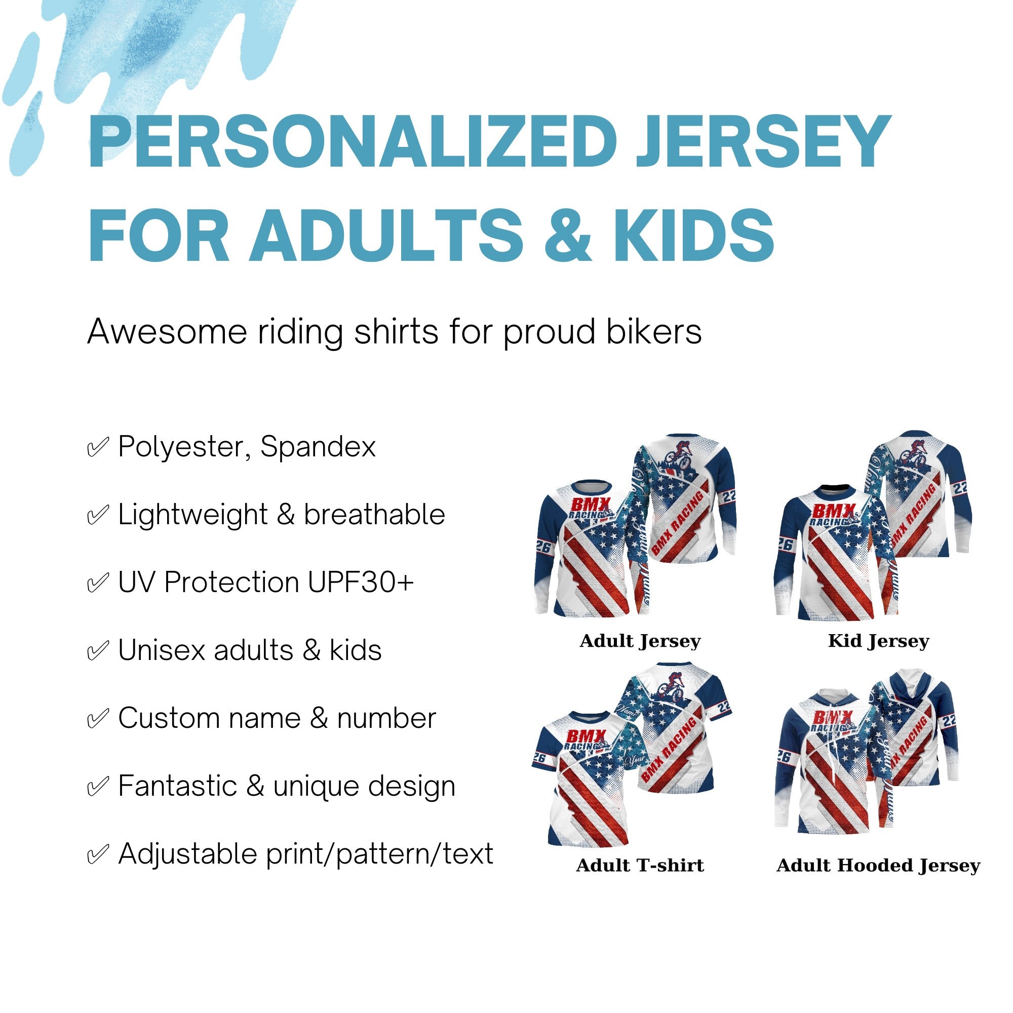 Patriotic adult kid BMX jersey USA bicycle motocross cycling tops UPF30+ American BMX riding shirt| SLC24
