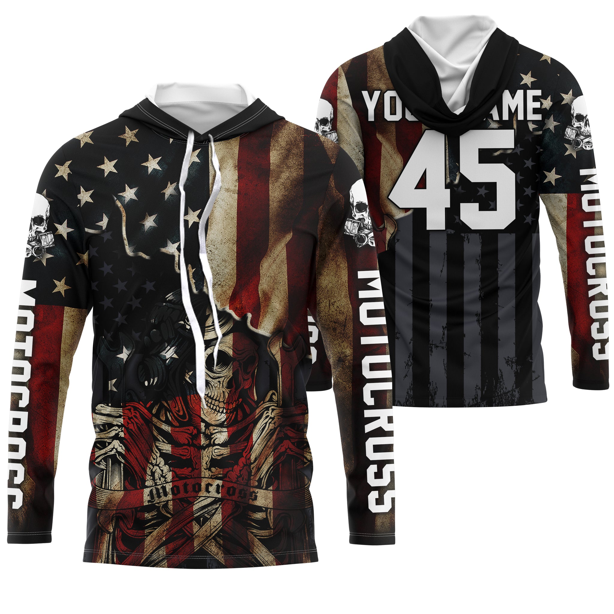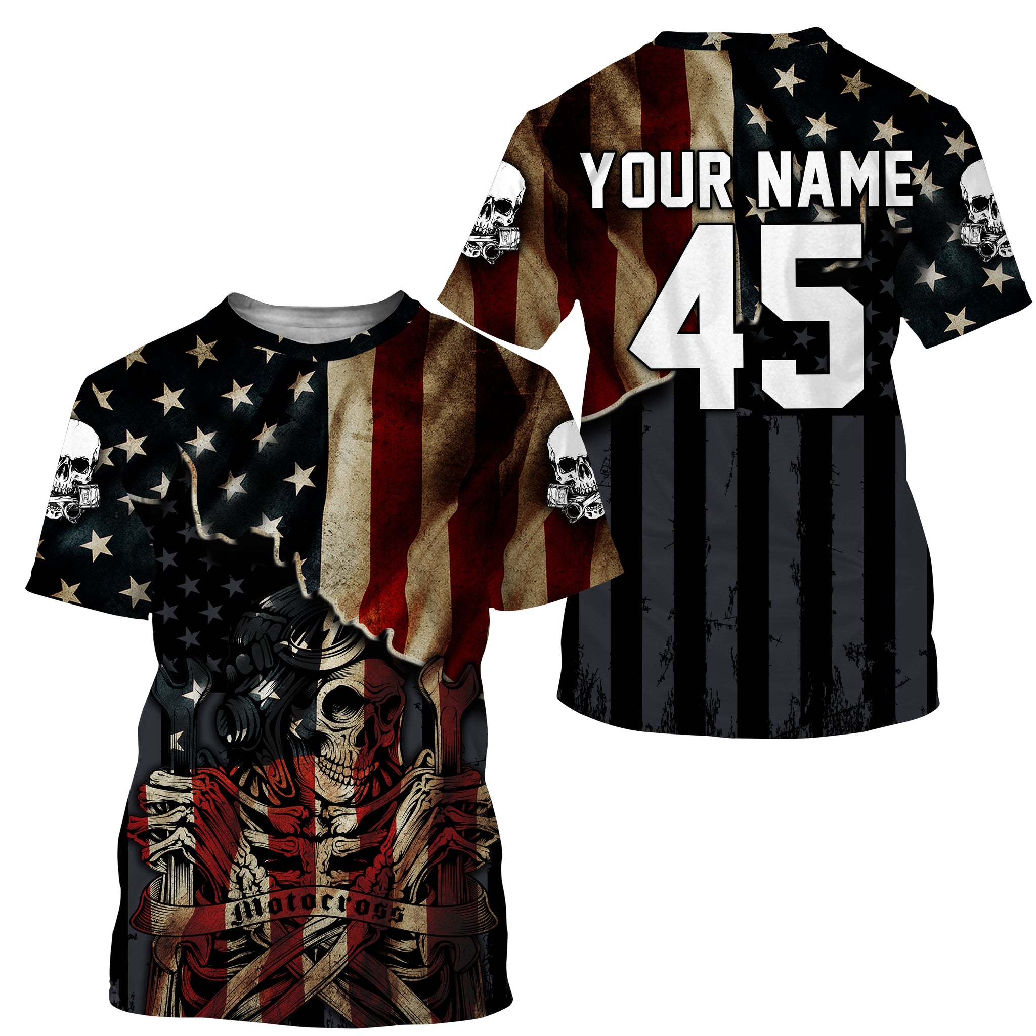 Patriotic Motocross jersey custom name number UPF30+ American flag adult&kid MX racing motorcycle NMS958