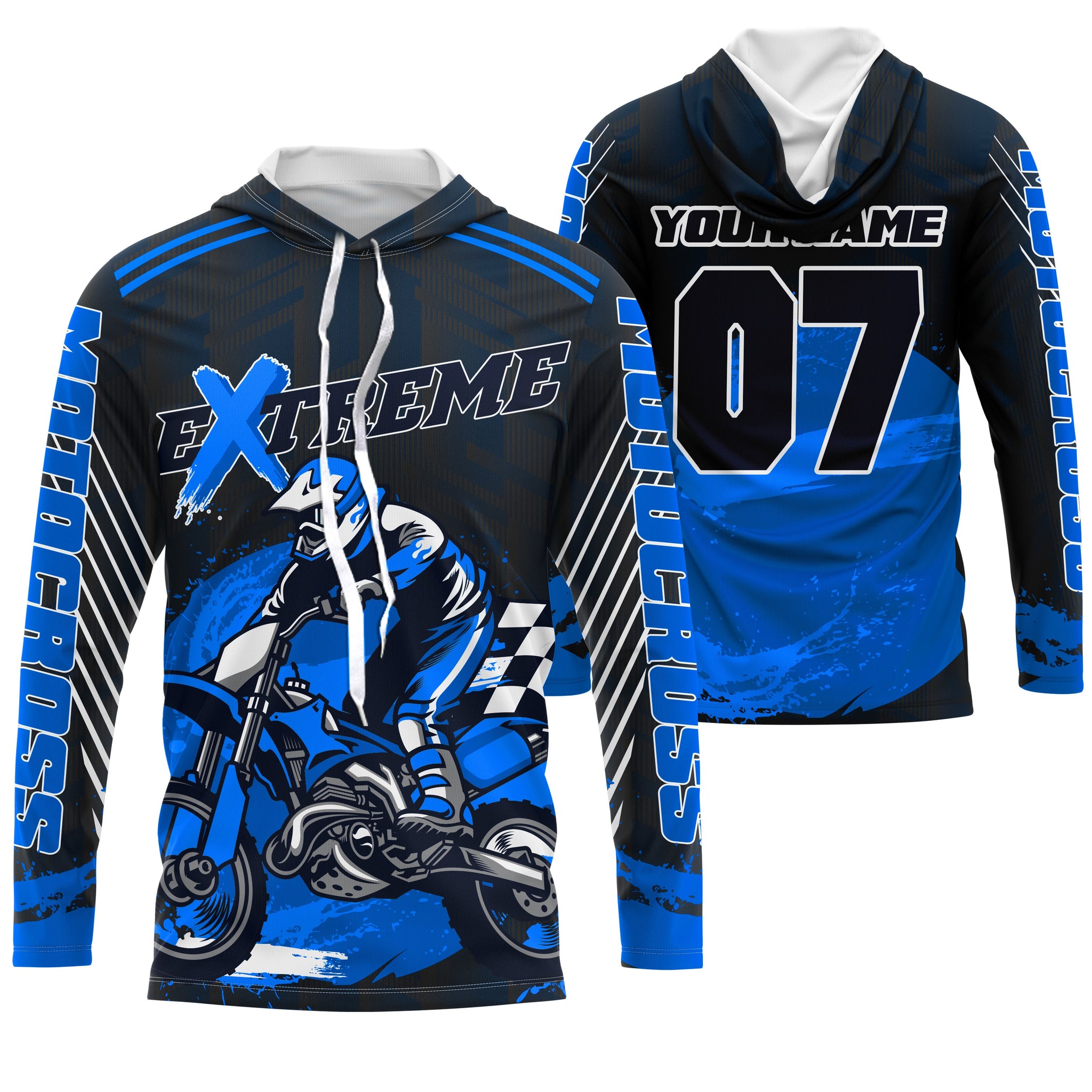 Personalized blue UPF30+ Motocross riding jersey extreme MX racing dirt bike off-road motorcycle PDT39