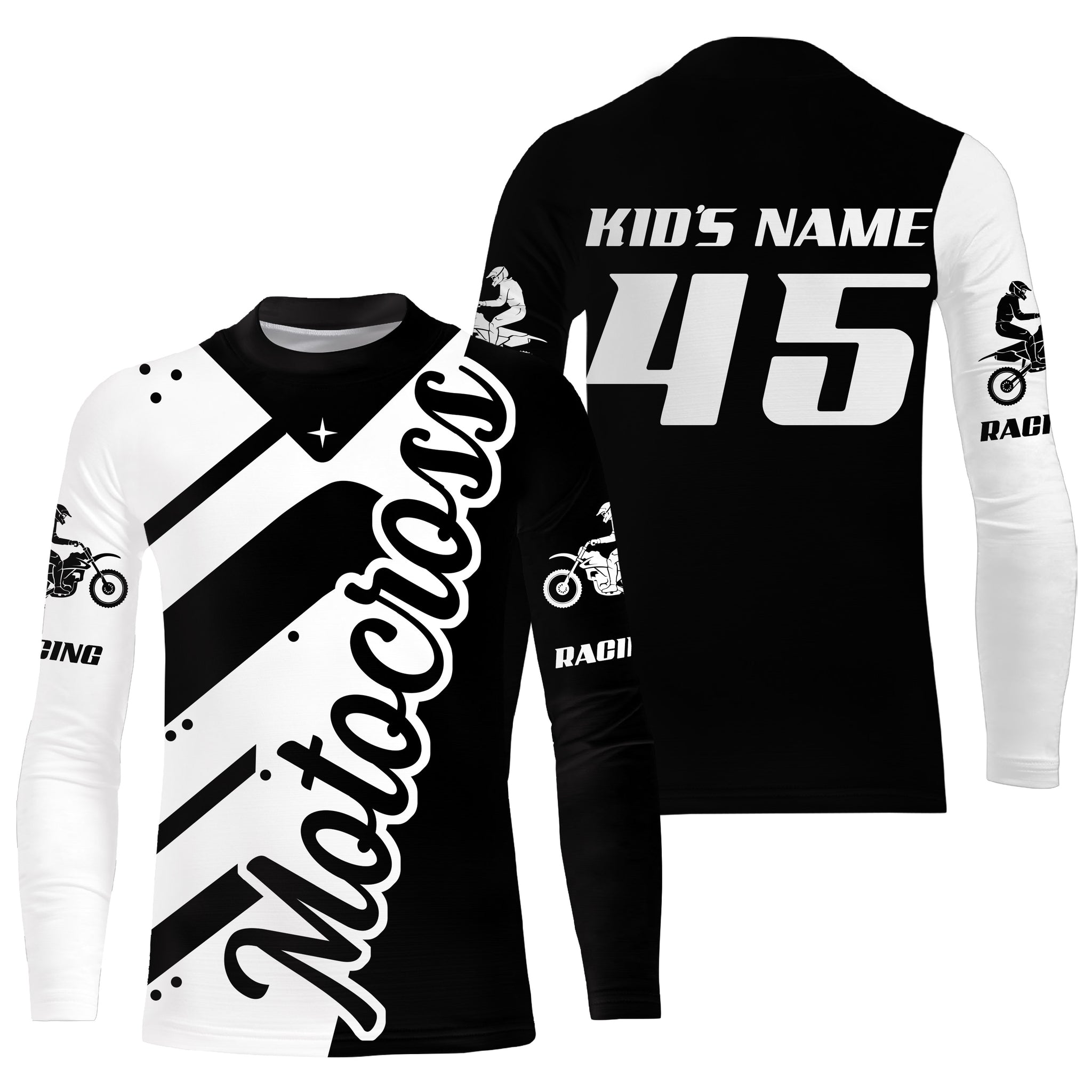 Personalized motocross jersey black white UPF30+ dirt bike racing long sleeves motorcycle bikers NMS1055
