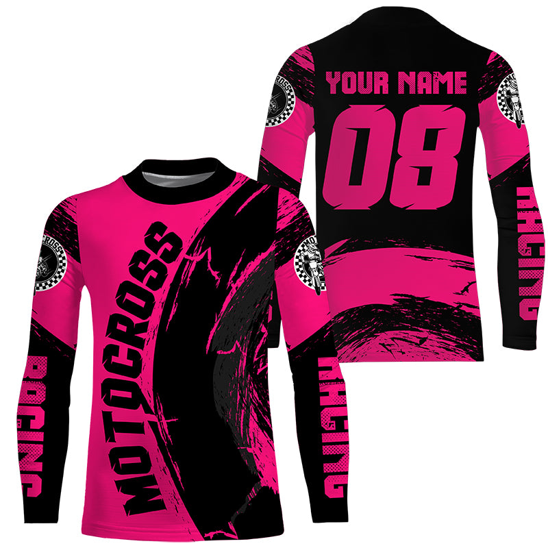 Personalized Motocross jersey pink youth girl UPF30+ MX racing dirt bike off-road long sleeves PDT229