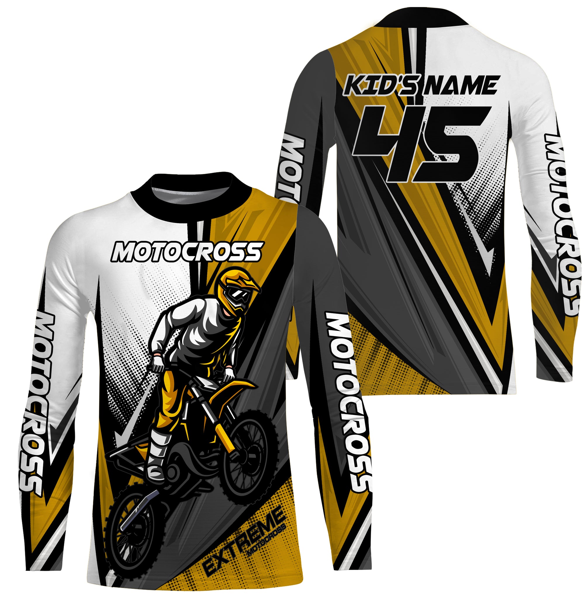 Personalized Motocross Jersey UPF 30+, Dirt Bike Motorcycle Off-Road Racing Long Sleeves - Yellow| NMS269