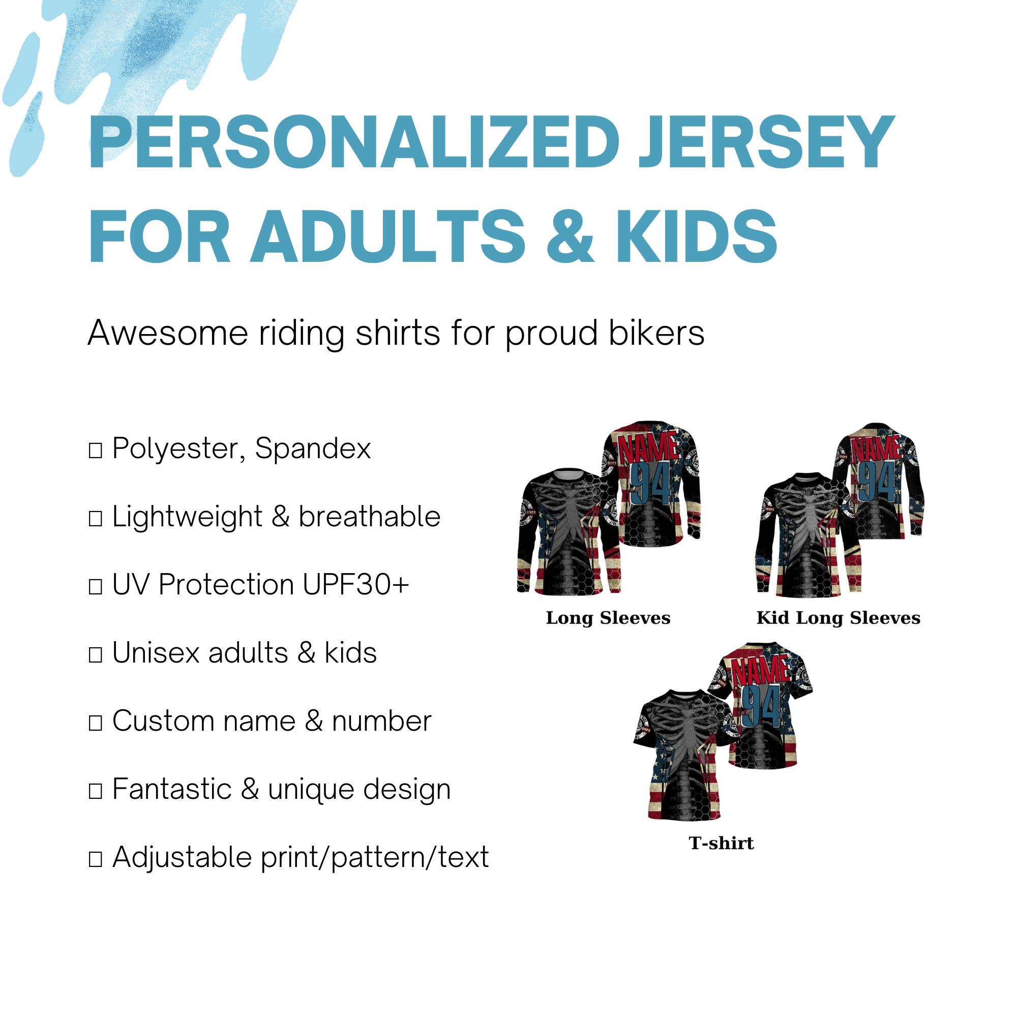 Personalized Racing Jersey UPF30+ Patriotic Chest Bone Motorcycle Motocross Off-Road Riders Racewear| NMS725