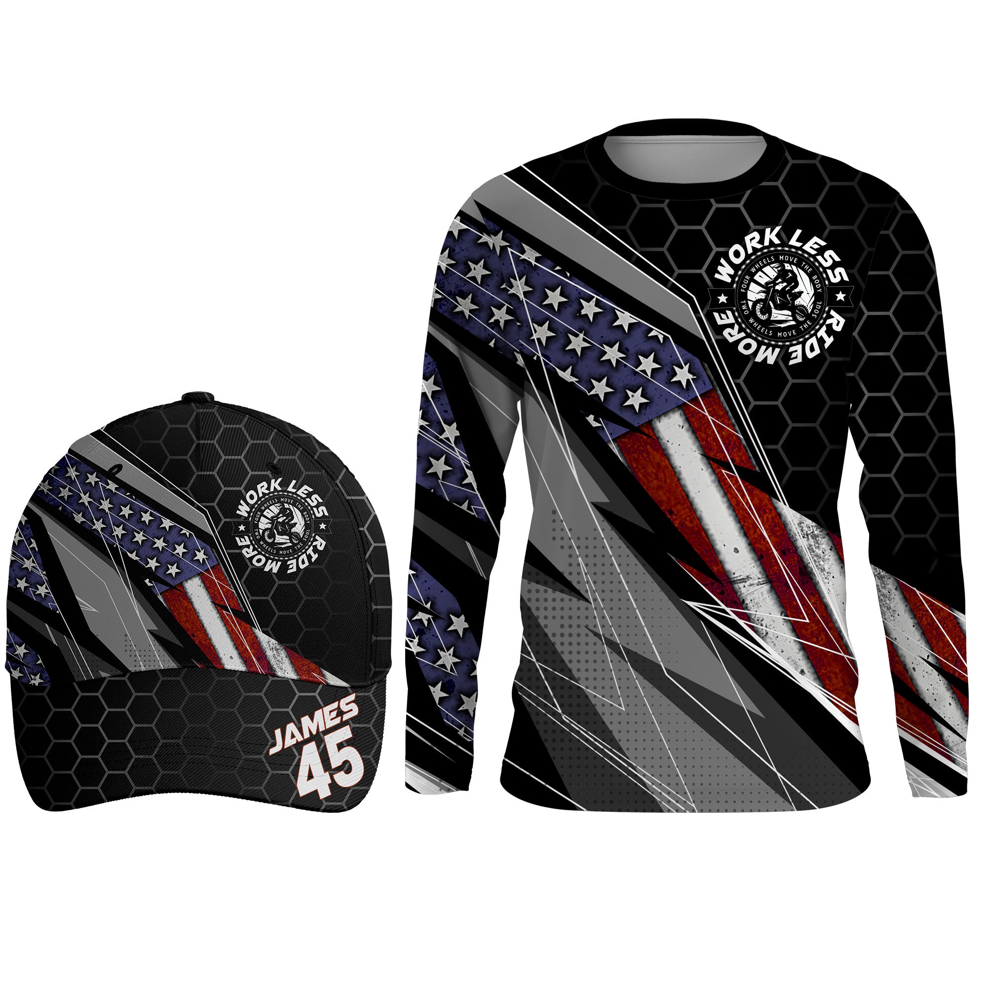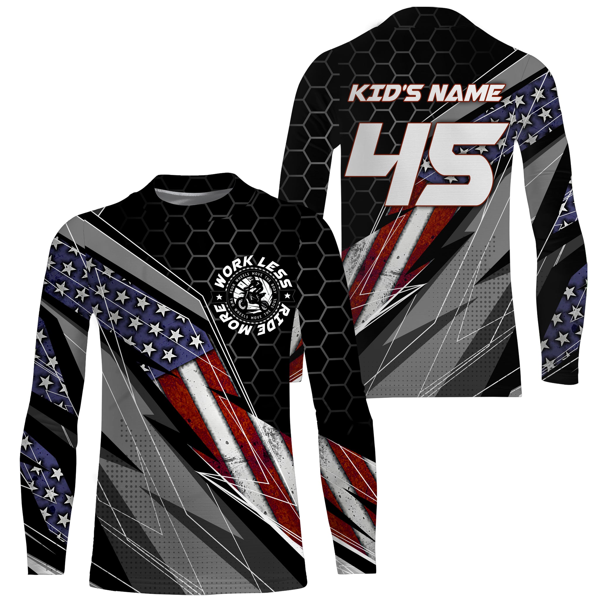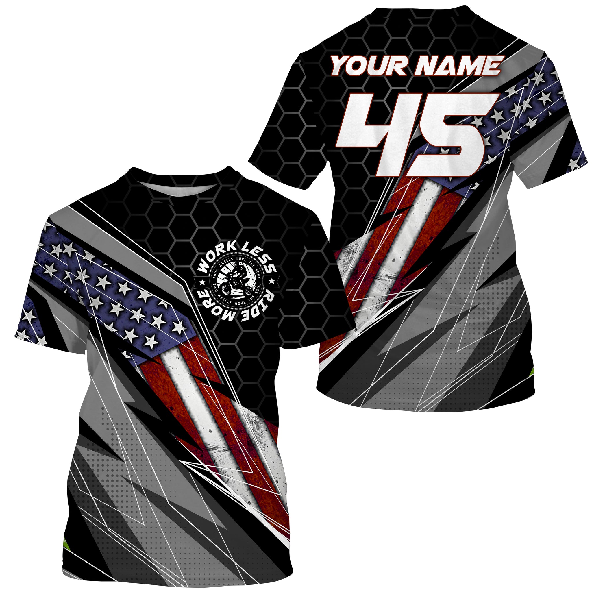 Personalized Racing Jersey UPF30+ Patriotic Work Less Ride More Dirt Bike Motocross Racewear NMS596