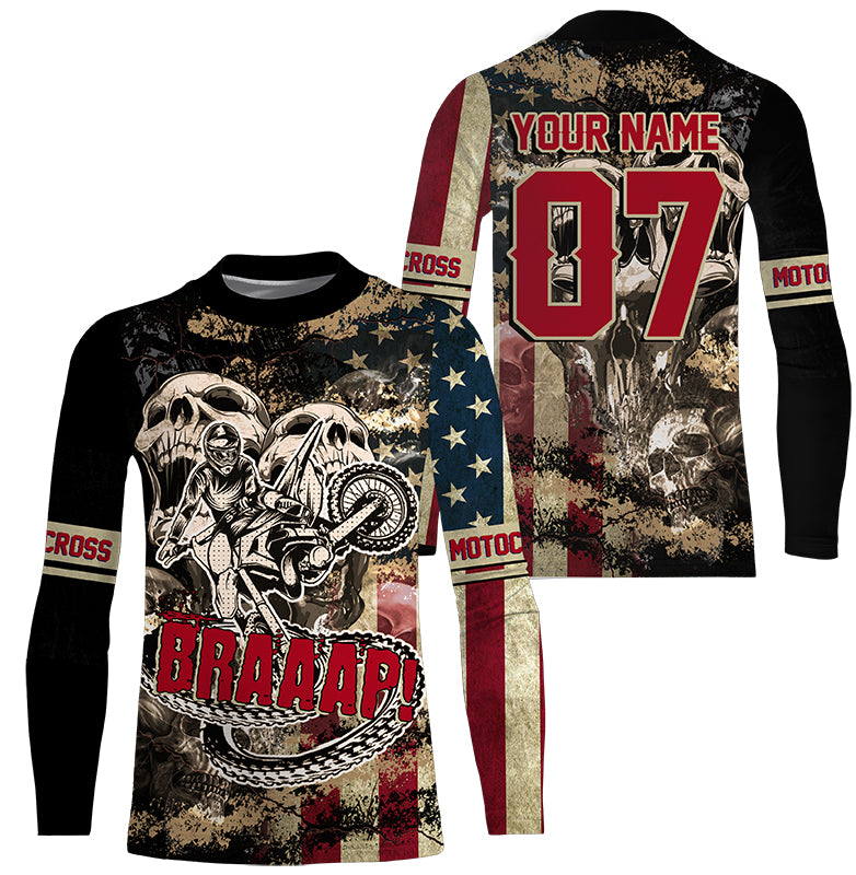 Personalized Skull Racing Jersey UPF30+ Dirt Bike Long Sleeves Brap Motocross Racewear NMS1247