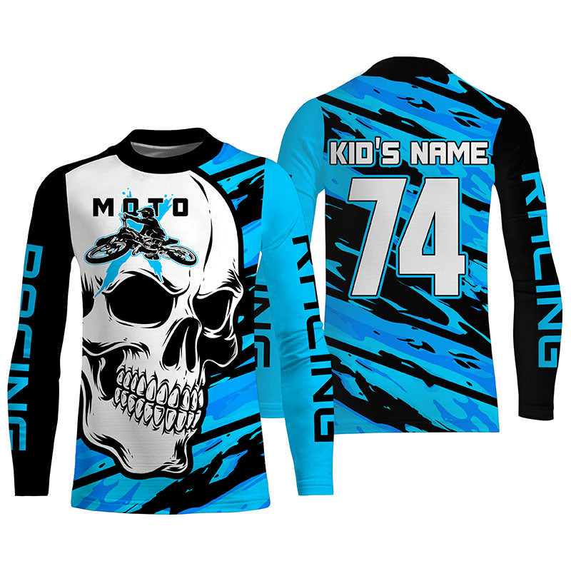 Skull MotoX Jersey Custom Motocross UPF30+ Blue Dirt Bike Racing Motorcycle Bikers Racewear NMS1265
