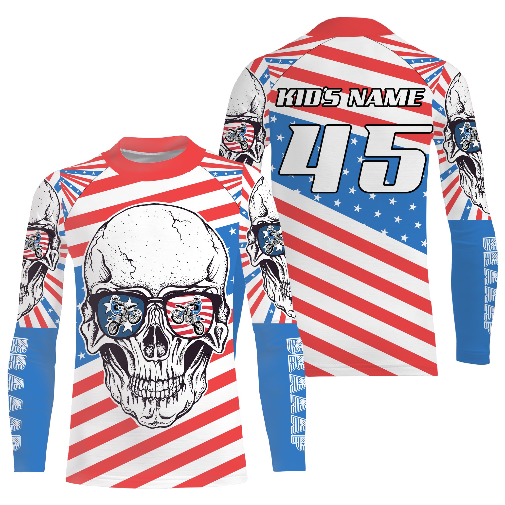 US flag skull personalized motocross jersey Patriotic dirt bike long sleeves kid adult motorcycle NMS1048