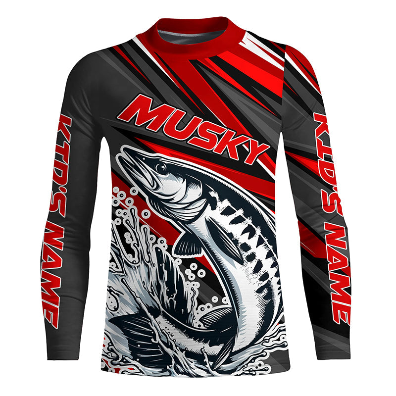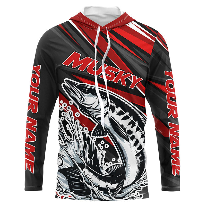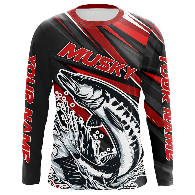 Personalized Musky Fishing Jerseys, Muskie Long Sleeve Tournament Fishing Shirts | Red IPHW5596
