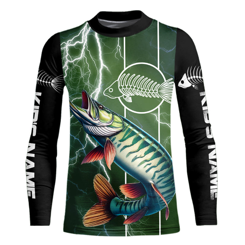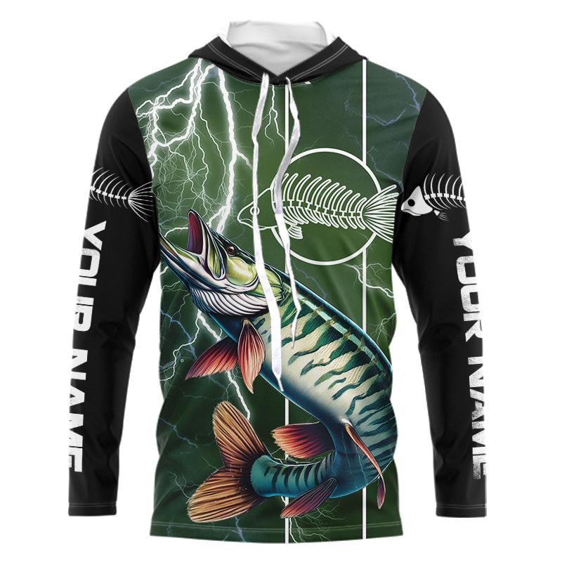 Musky Fishing Custom Long sleeve Fishing Shirts, Muskie green lightning reaper Fishing jerseys NQS3991