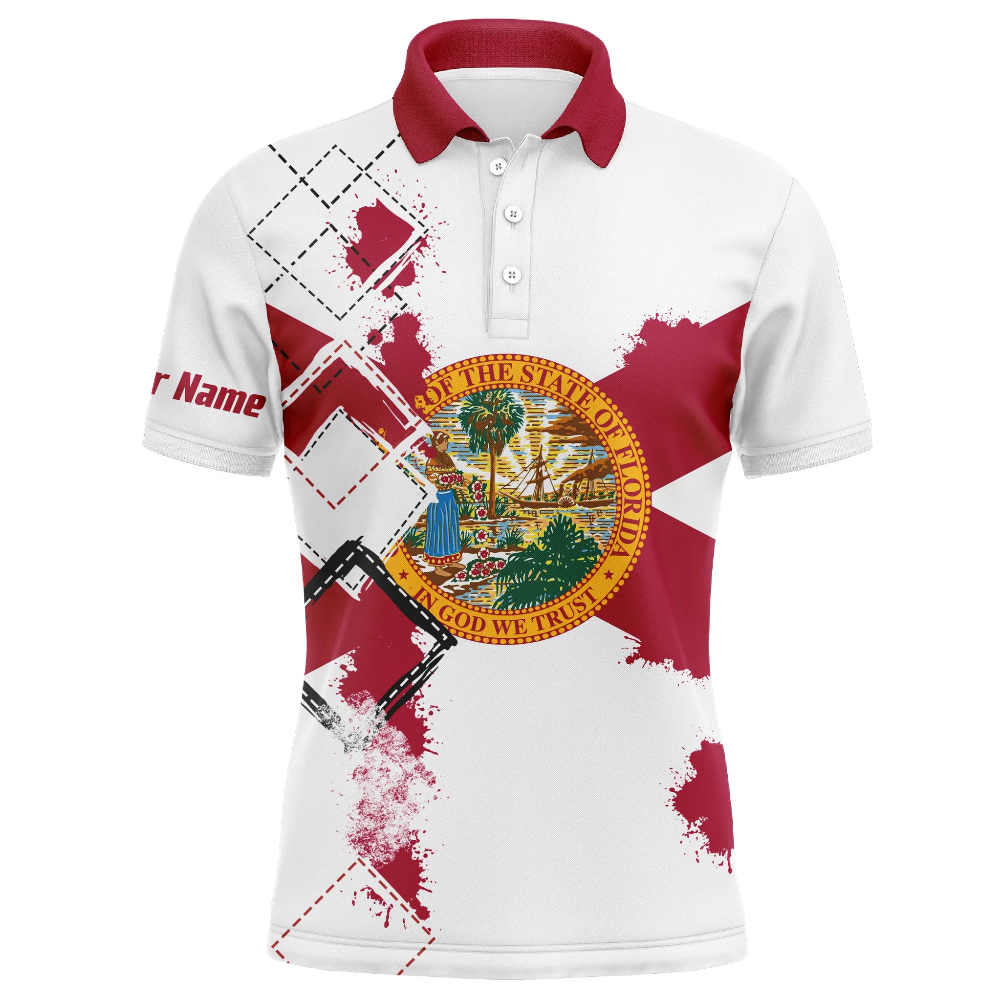 Mens golf polo shirts Florida flag patriot custom name golf shirts for men, gift for the golfers NQS5063