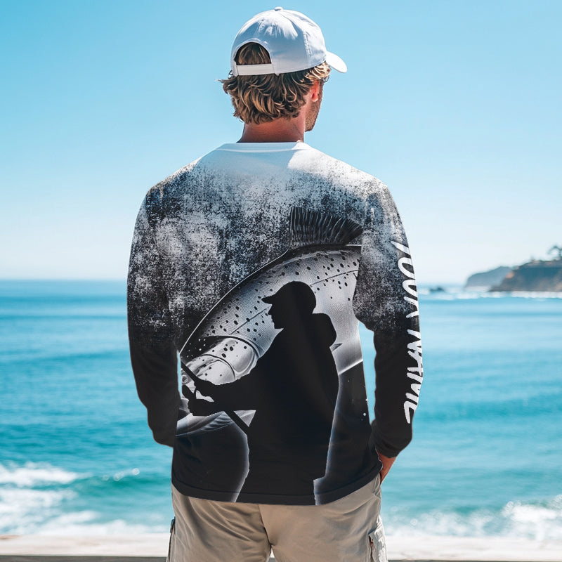 Black and white King Salmon Fishing Customize 3D All Over Printed Shirts Personalized Fishing Gifts NQS354