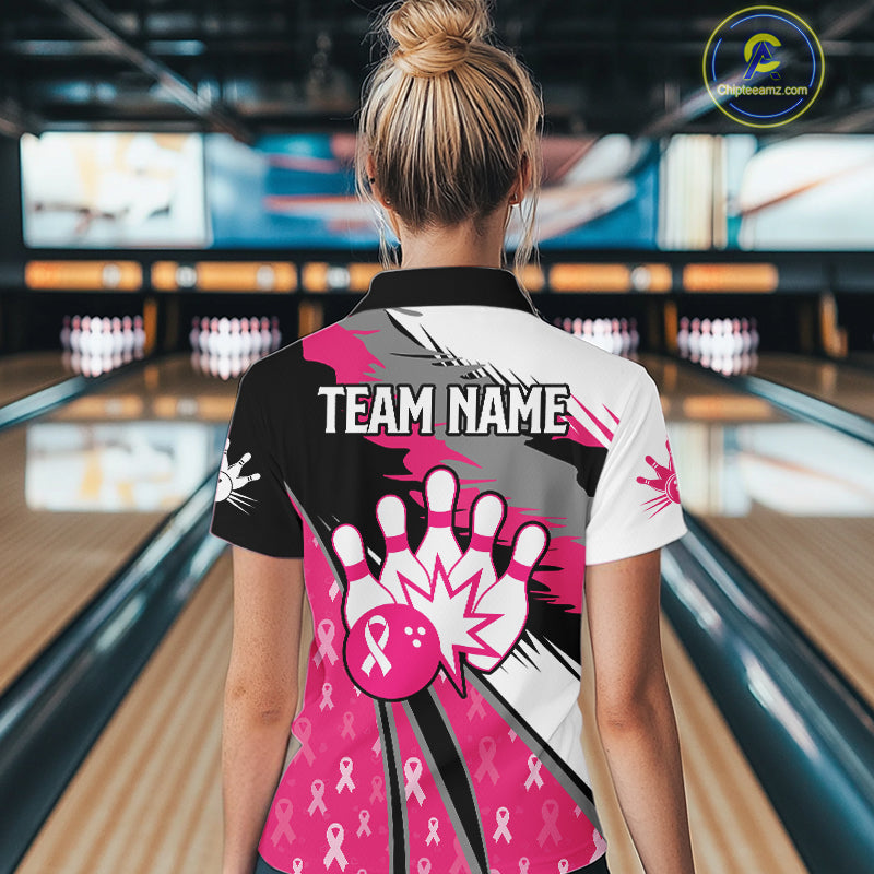 Women bowling shirts Custom pink ribbons pattern Bowling Team Jersey, Breast cancer shirt for Bowler NQS10515