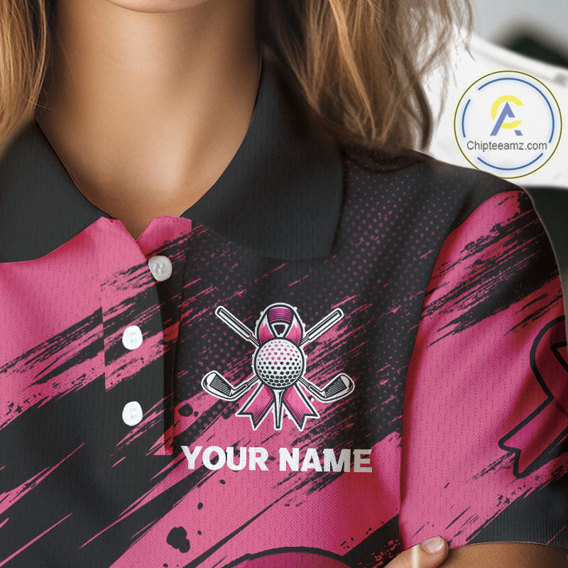Black and Pink ribbon Women golf polo shirts Custom breast cancer American flag golf top for Women NQS10140