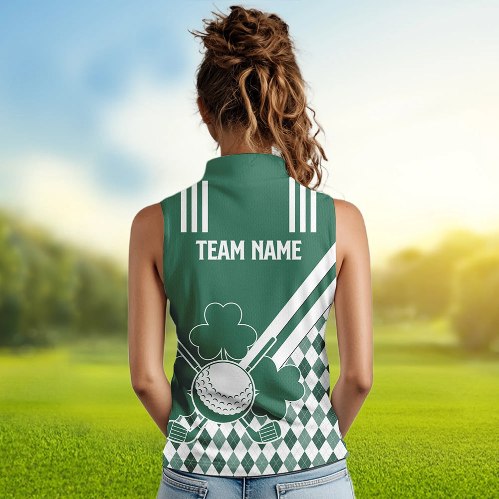 Green and White argyle shamrock St Patrick Day Women sleeveless polo shirt Custom Women golf clothing NQS9384