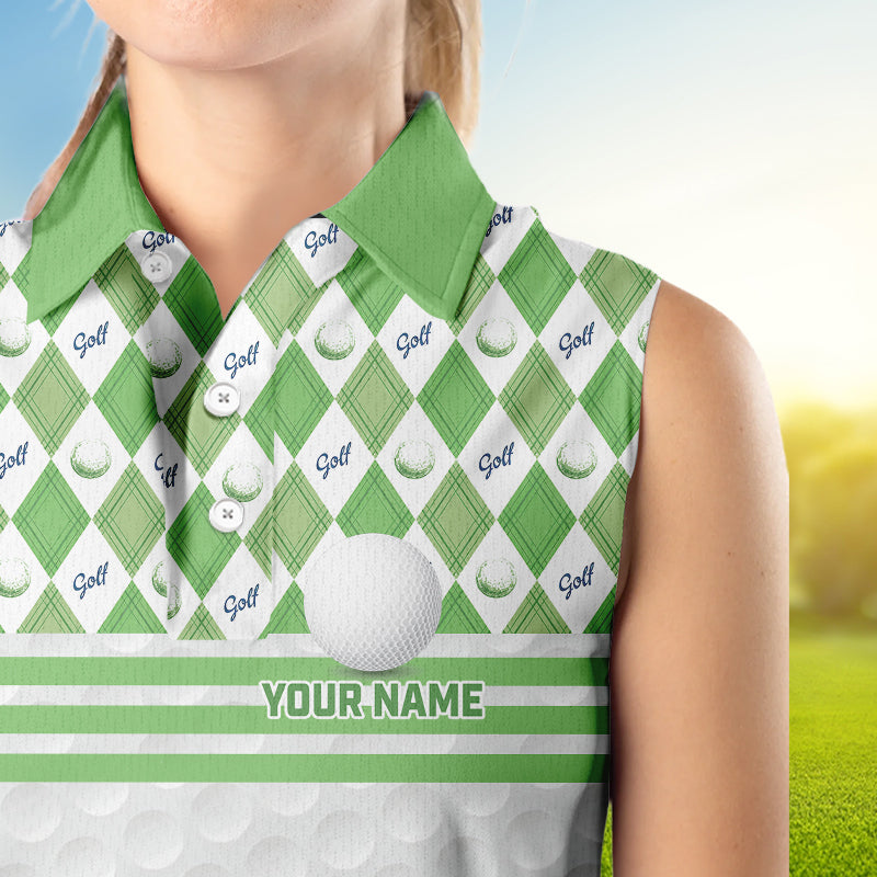 Green argyle pattern American flag white Women sleeveless polos custom patriotic gifts for golf lovers NQS9595