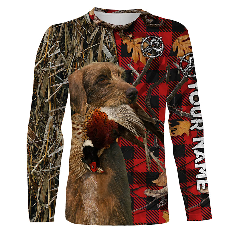 Pudelpointer Pheasant Hunting Dog Red Plaid Camo Custom Name Shirts, Christmas Gifts for Hunters FSD4245