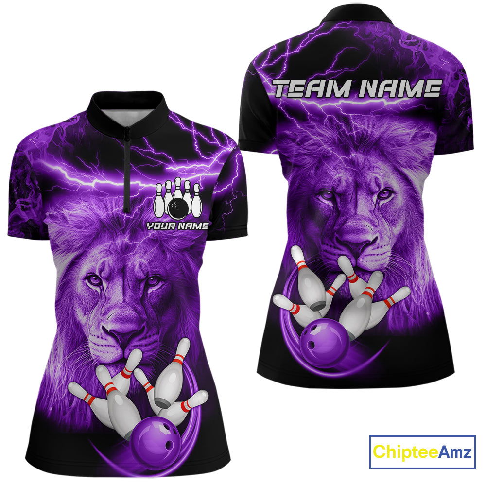 Personalized Purple Lightning Thunder Storm Lion Bowling Shirts For Women Custom Bowling Team Jerseys NQS9839