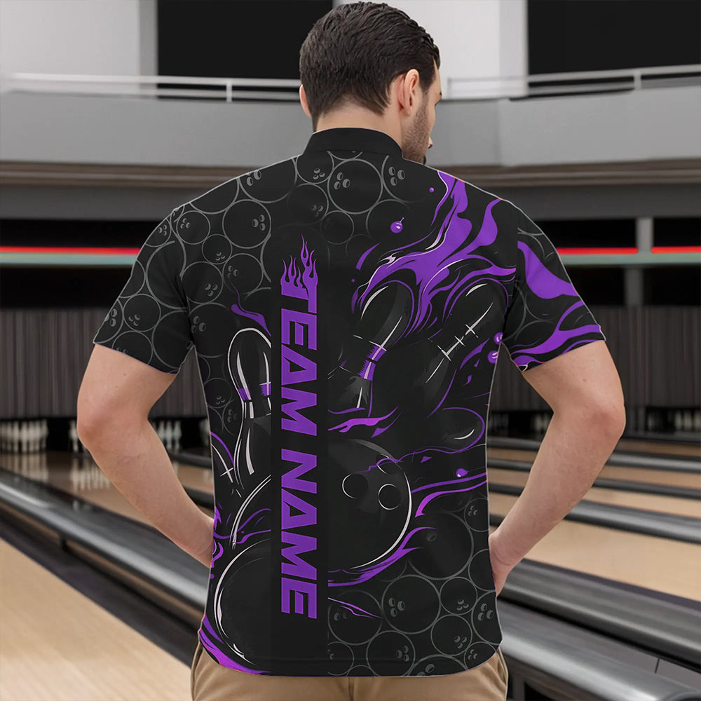 Custom Black And Purple Flame Strike Bowling Team Quarter-Zip Shirts For Men, Strike Bowling Jerseys IPHW8612