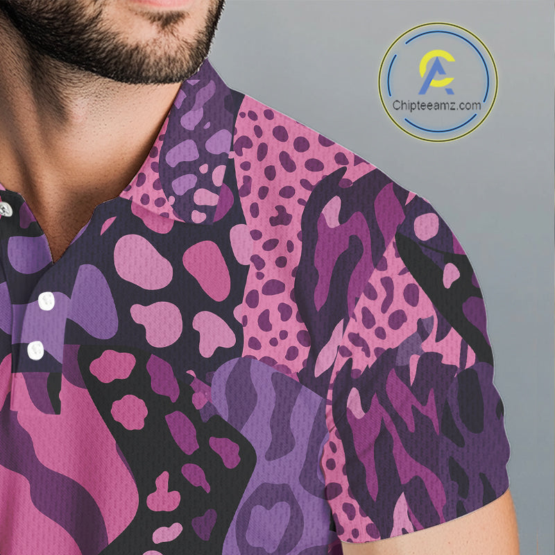 Pink and purple animal prints pattern Mens Golf Polo Shirts Custom Mens golf tops, golfing gifts NQS10243