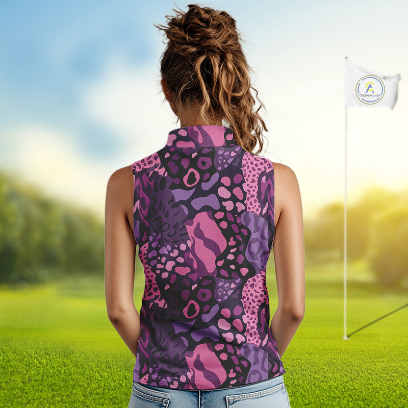 Pink and purple animal prints pattern Women Sleeveless Polo Shirt Custom ladies golf tops, golf gifts NQS10243