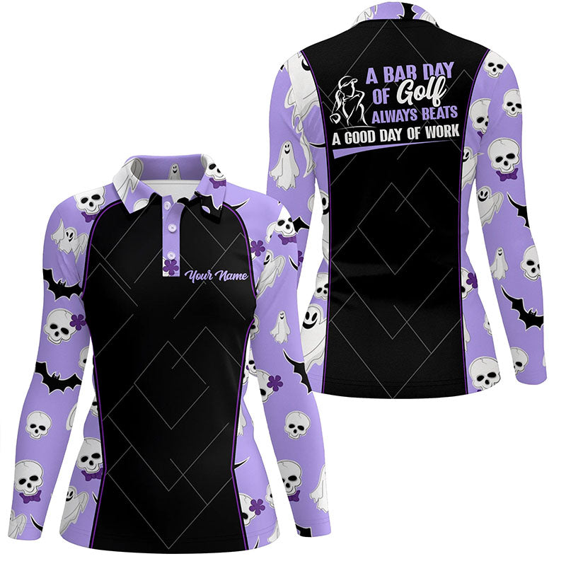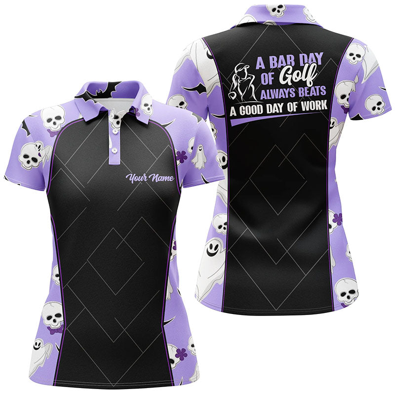 Womens Purple Halloween Golf Polo Shirt, Halloween With Skulls And Ghosts Golf Shirts For Women LDT0113
