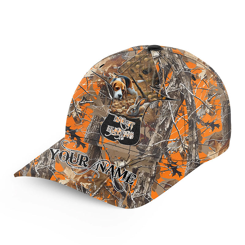 Rabbit hunting Orange camo Custom Name hunting hat, Adjustable Unisex Hunting Baseball hat FSD3488