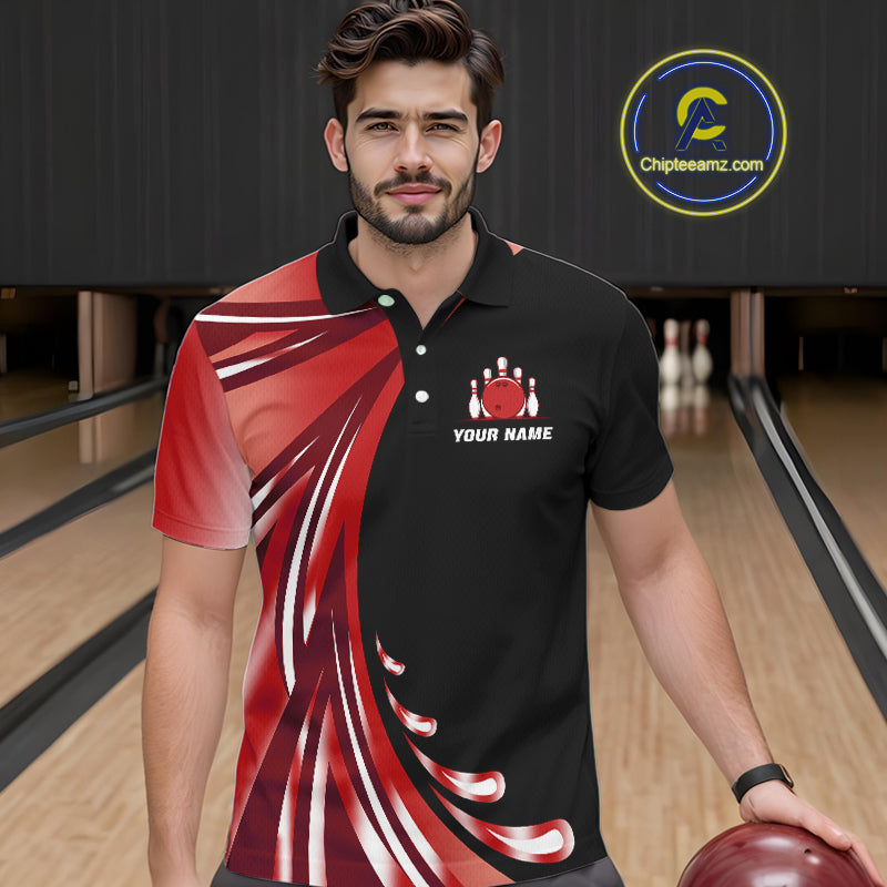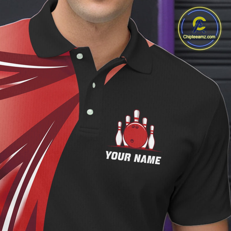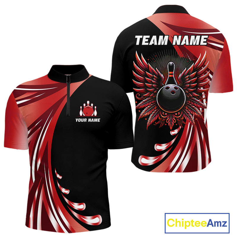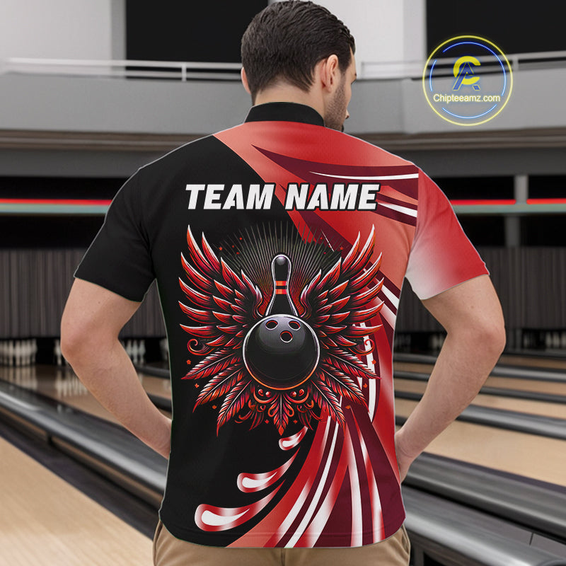 Black and Red Bowling Ball and Pins wings Bowling Shirts for Men Custom Team Bowling Jerseys NQS10491