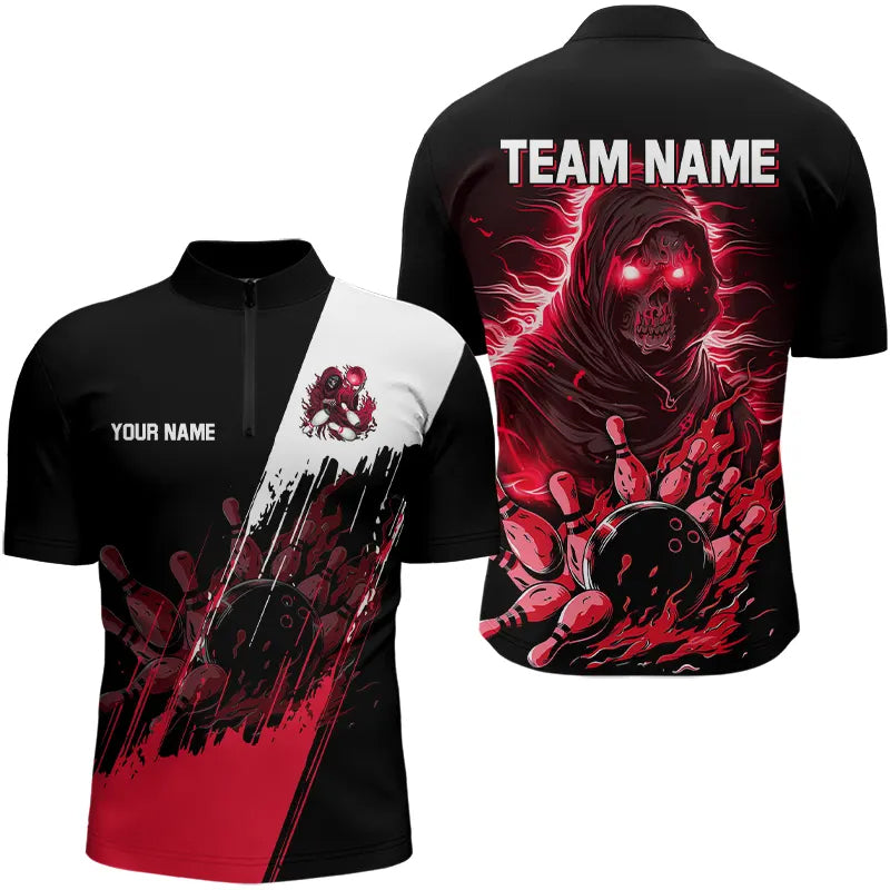 Black and Red Skull reaper bowling jerseys Polo, 1/4 Zip Shirt for Men Custom Bowling Team shirts NQS9280