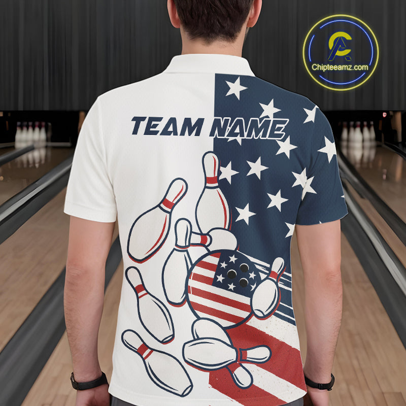 Custom American flag Bowling Shirt For Men personalized red, white and blue patriotic bowling shirts NQS10313