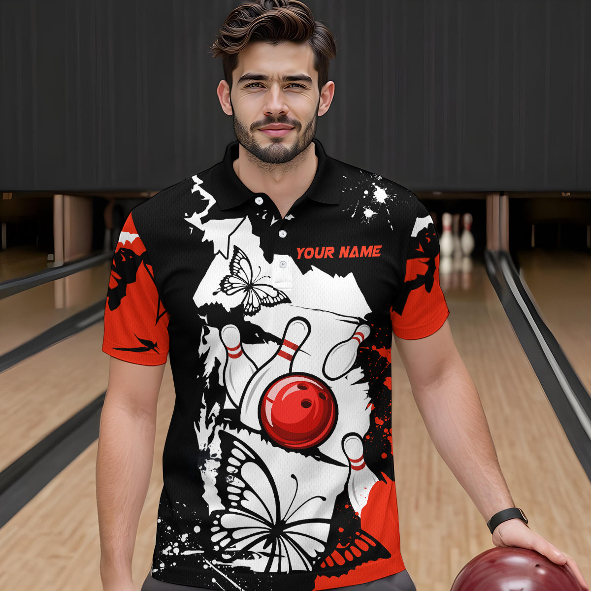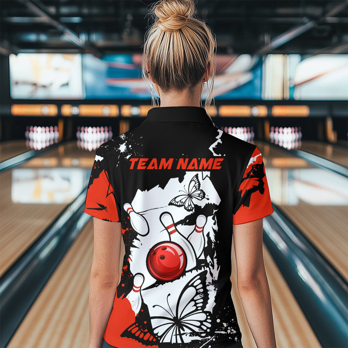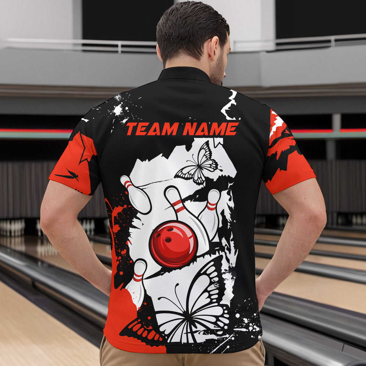 Custom Red Butterflies Bowling Shirt for Men Women Team Bowling Polo&Quater Zip MBL76
