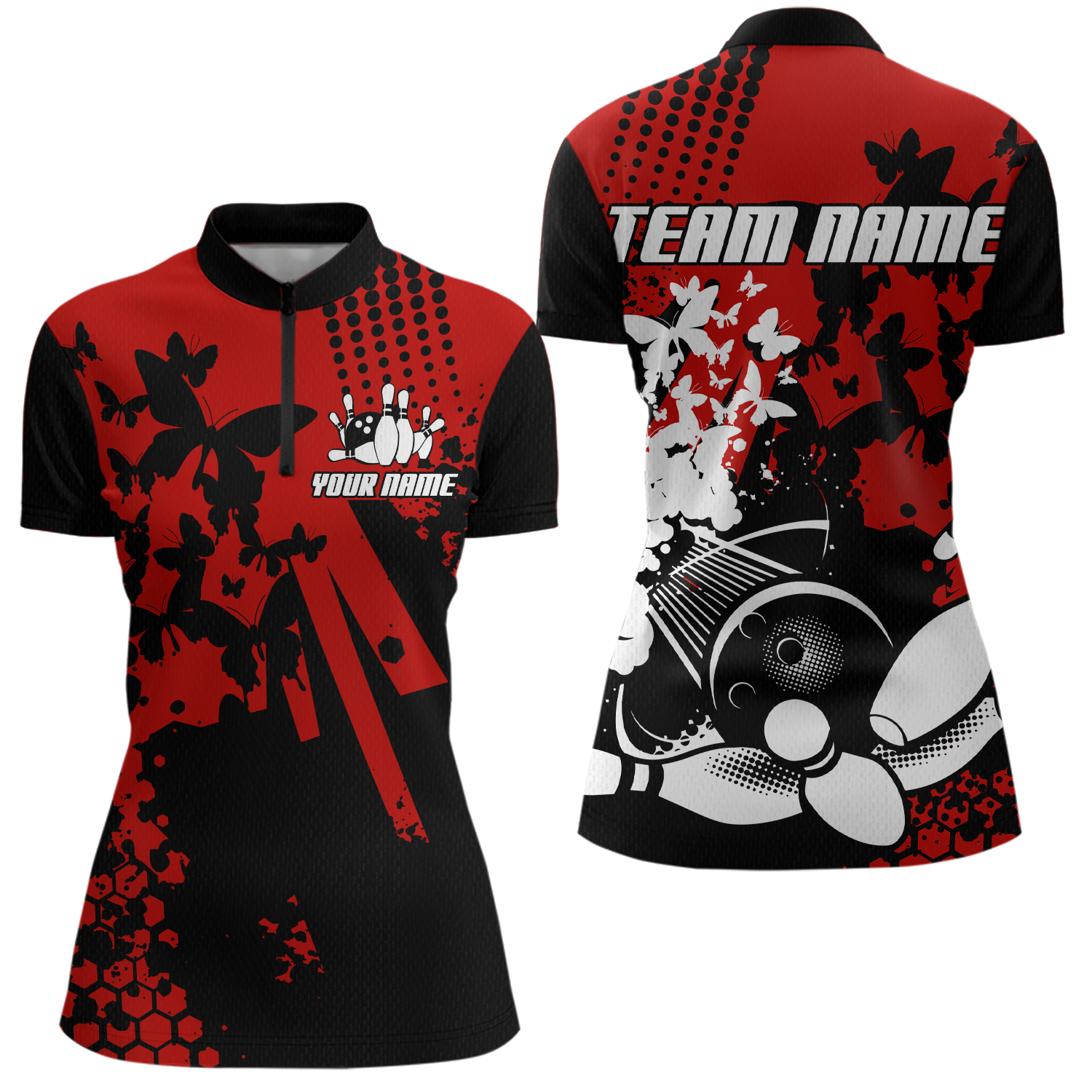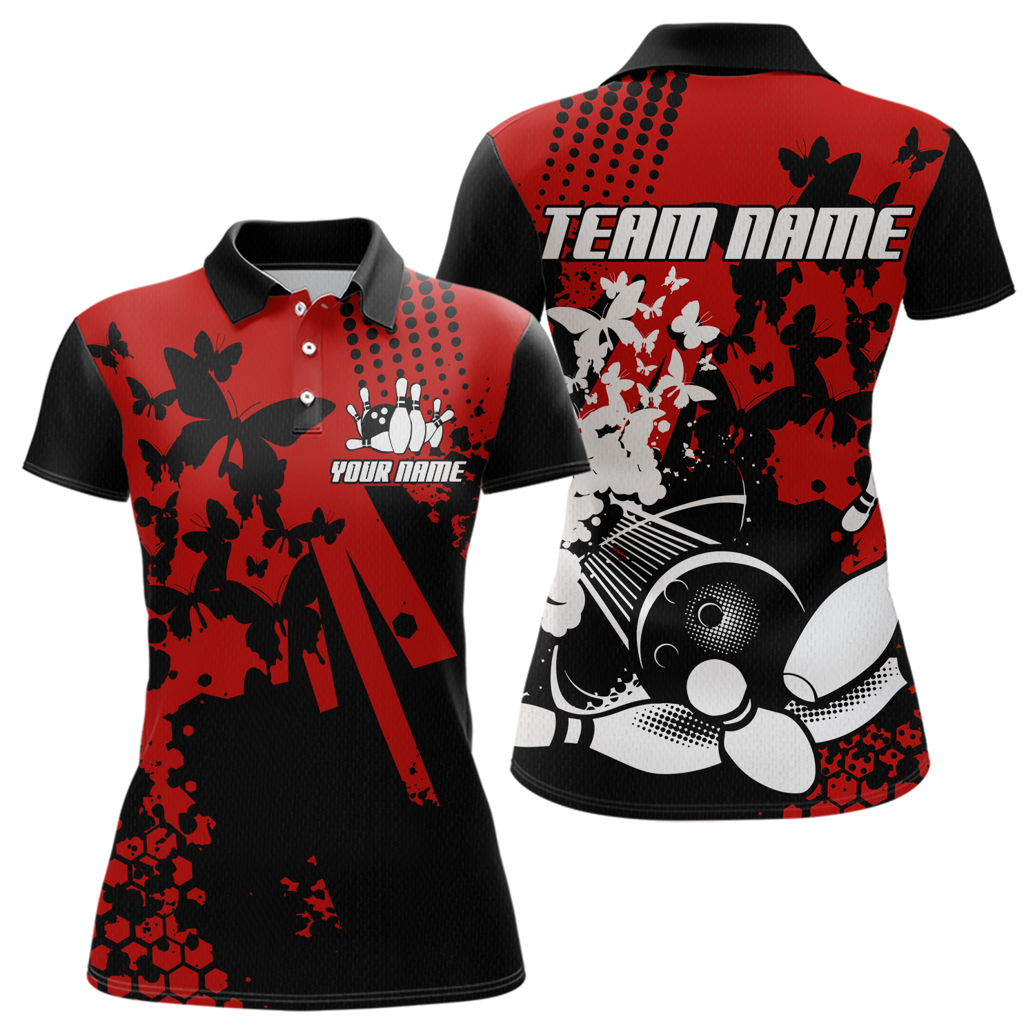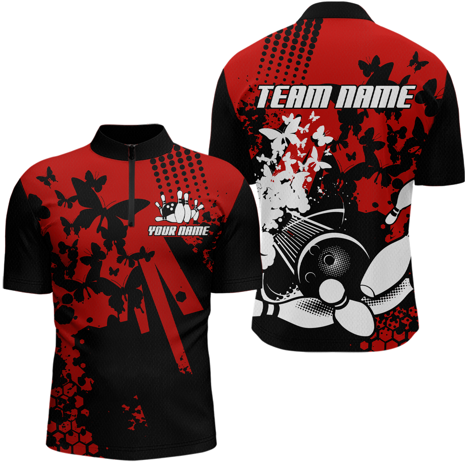 Custom Red Butterflies Bowling Shirts for Men Women Bowling Jersey Team Name MBL79