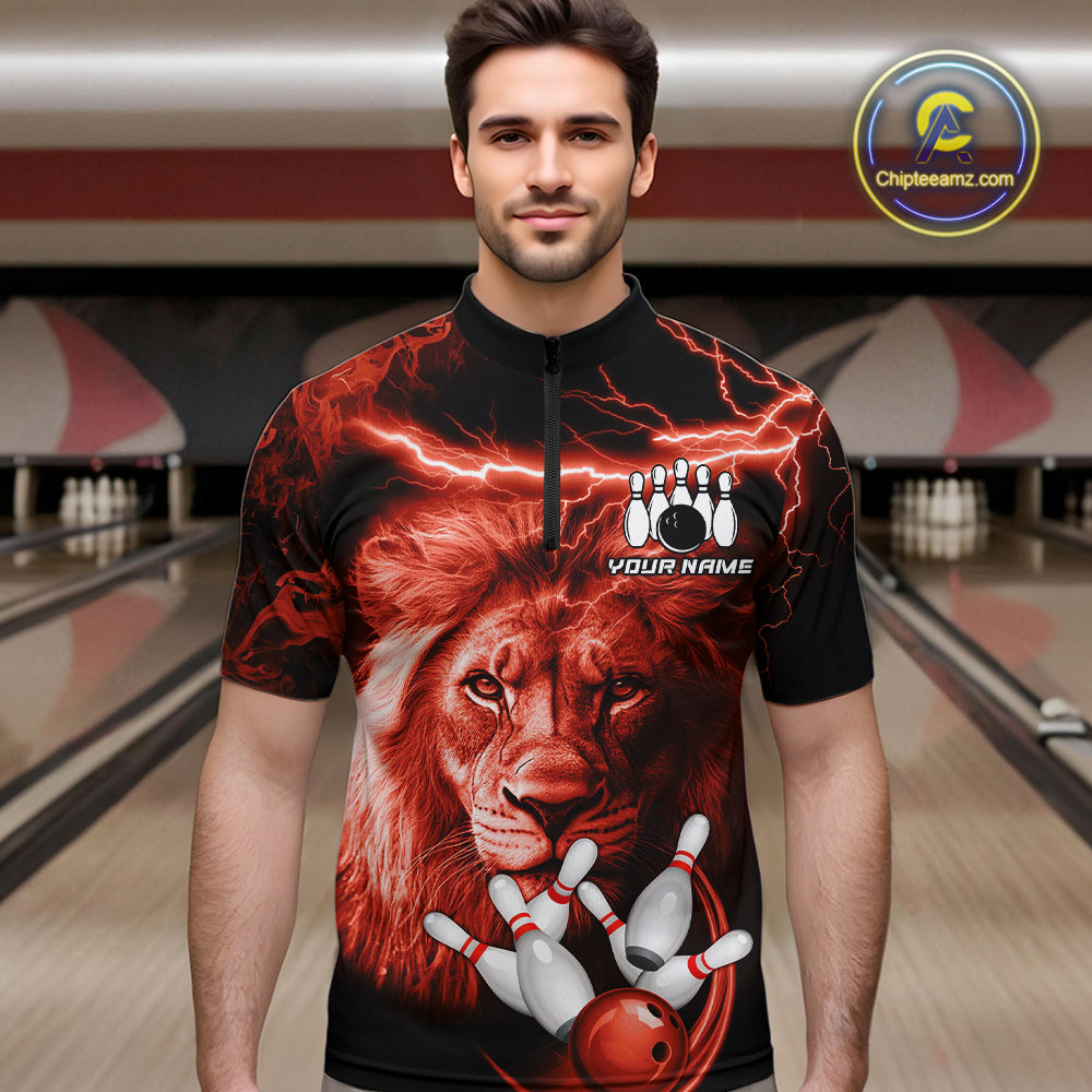 Personalized Red Lightning Thunder Storm Lion Bowling Shirts For Men Custom Bowling Team Jerseys NQS9840