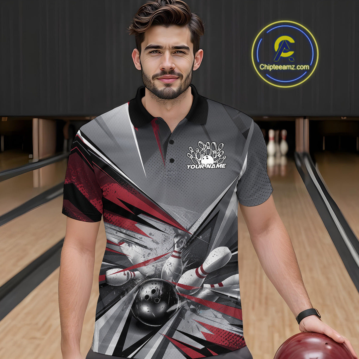 Custom Red And Gray Bowling Polo Team Shirts For Men, Bowler Outfit Bowling League Shirt IPHW9557
