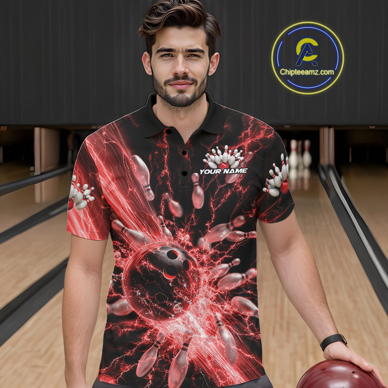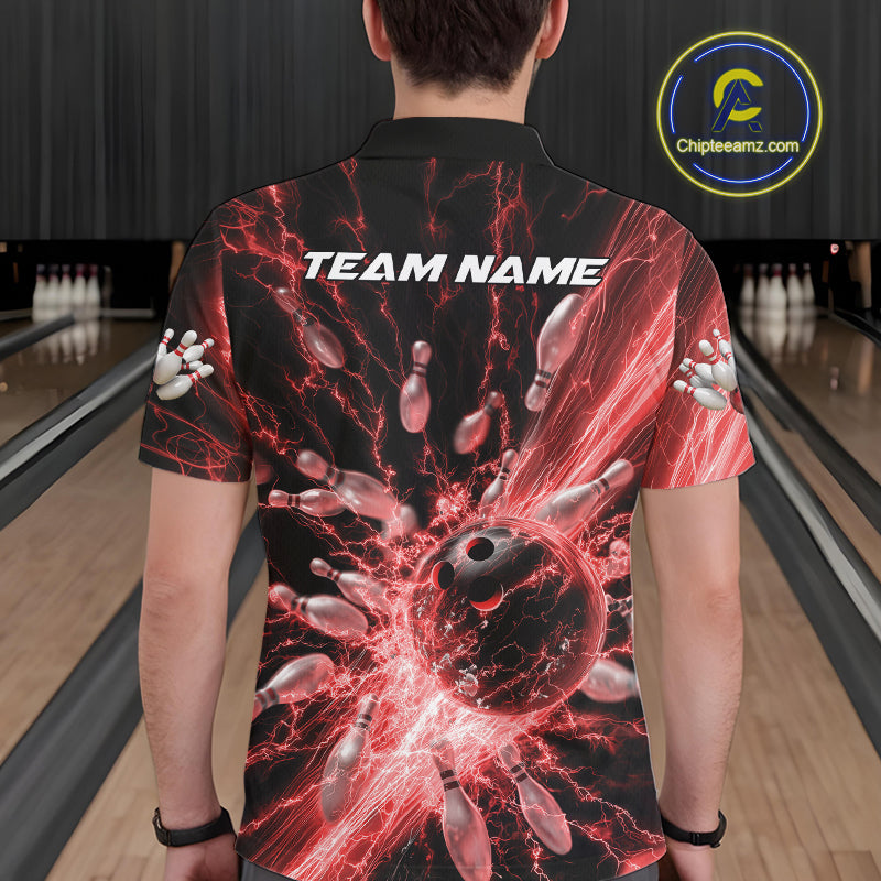 Custom Red Thunder Lightning Bowling Team Men Polo Shirts, Bowling Jerseys IPHW9743