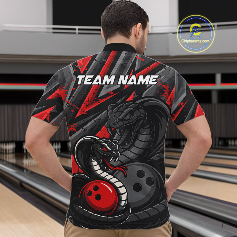 Custom Grunge Black And Red Cobra Snake Bowling Men Quarter-Zip Shirts With Team Name For Bowlers IPHW9027