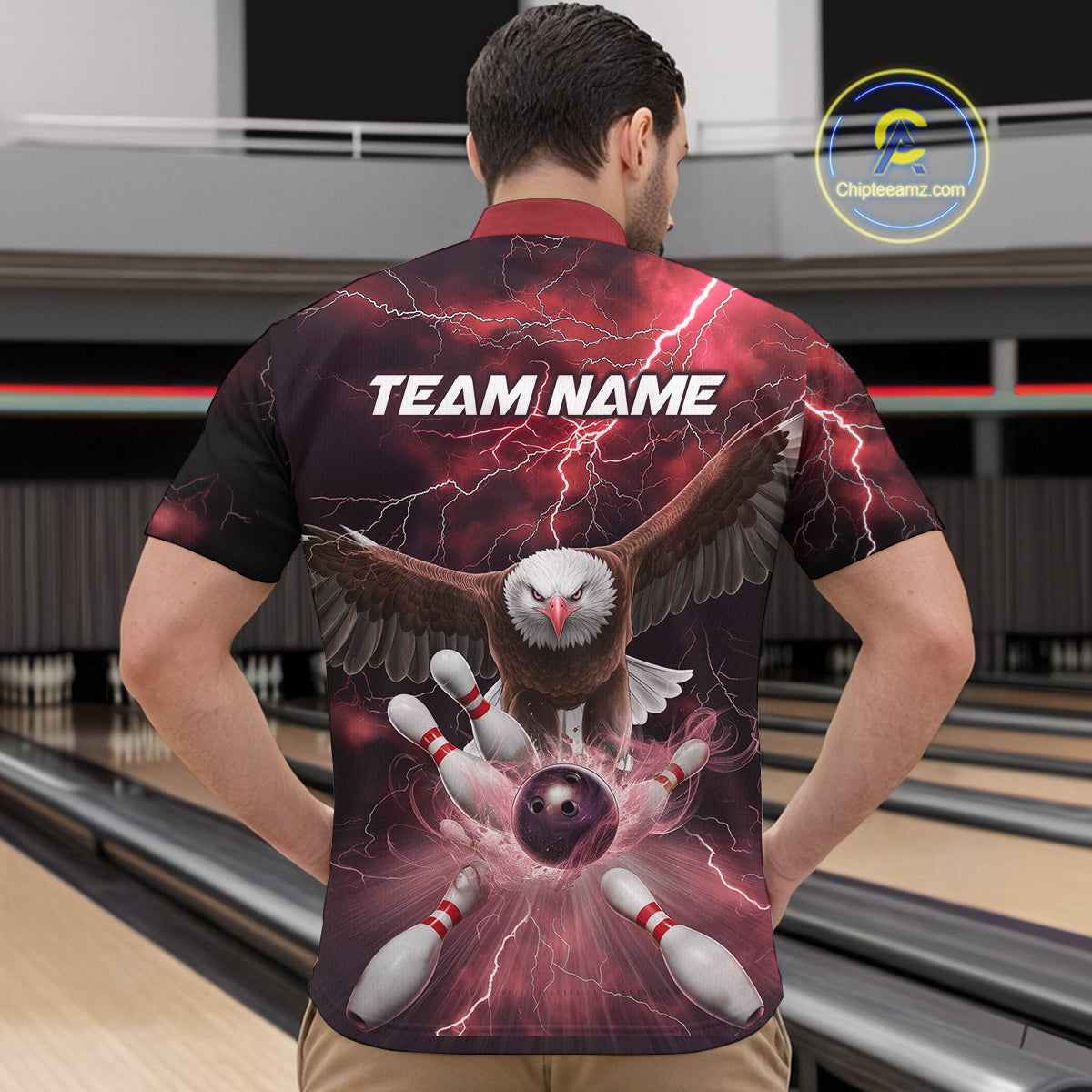 Custom Red Thunder Lightning Eagle Bowling Quarter-Zip Shirts For Men, Eagle Bowling Jerseys IPHW9366