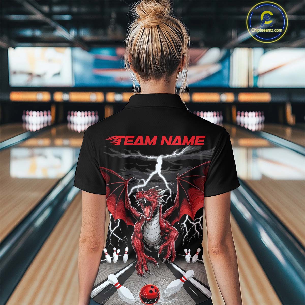 Custom Red Dragon On The Lane Bowling Women Quarter-Zip Shirts, Dragon Bowling Team Shirt IPHW9101
