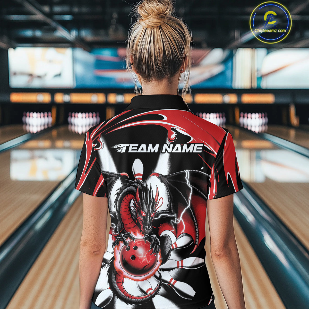 Custom Black And Red Dragon Bowling Women Quarter-Zip Shirts, Dragon Bowling Team Jerseys IPHW9108